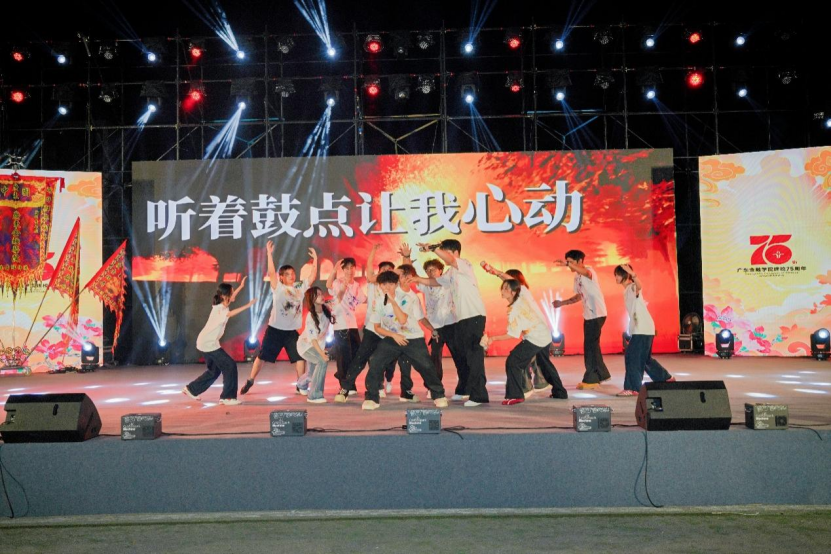 晚会以“宏开新业 峥嵘岁月”“弦歌不辍 勇立潮头”“薪火相传 开创未来” 三个篇章展开,通过朗诵、舞蹈、歌唱、乐器演奏等多种形式,将艺术表演与学校历史、办学特色、育人使命深度融合,既生动展现了广金人的奋斗与拼搏,又表达了对未来的美好憧憬,让观众在视听盛宴中产生情感共鸣。