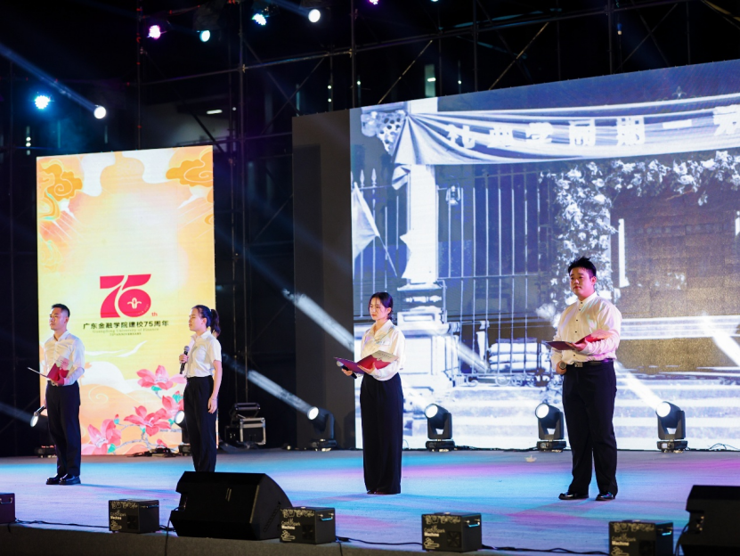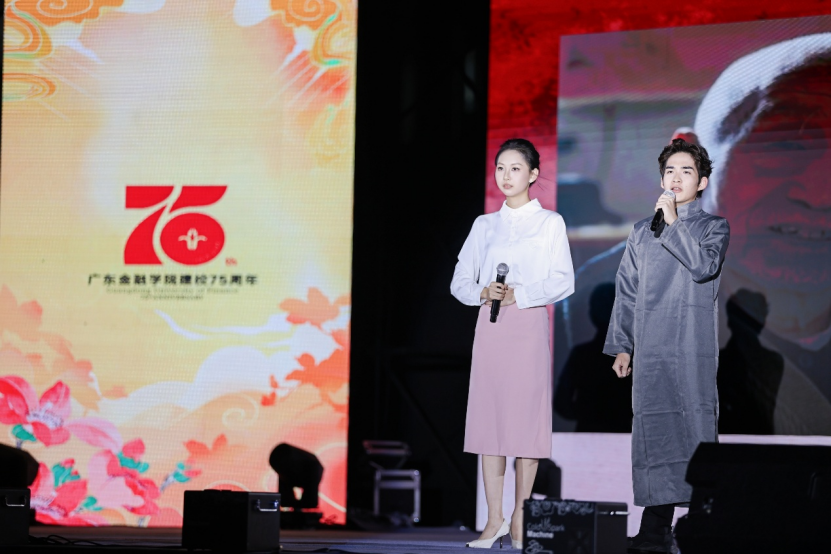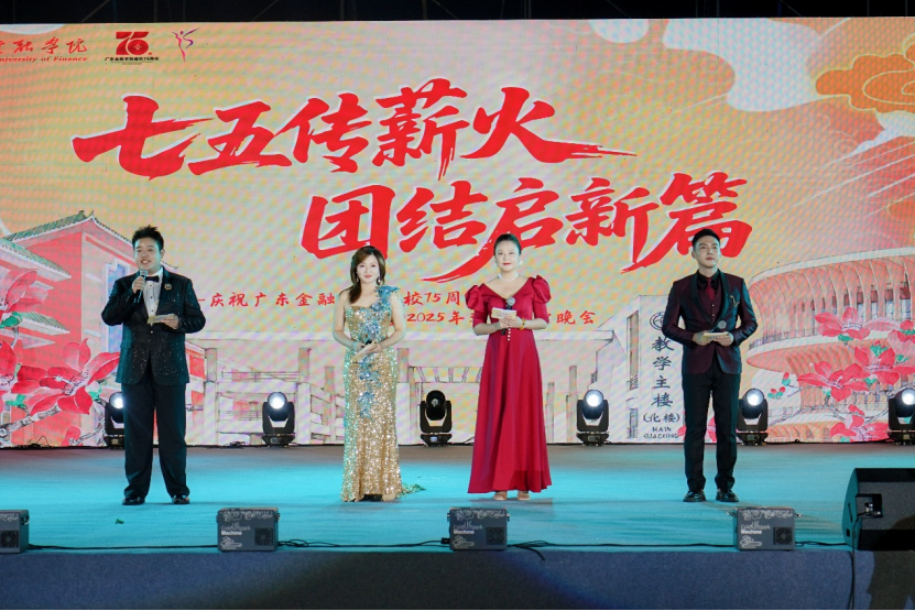 75载金融情,薪火永相传。今年是广东金融学院75周年华诞。10月16日晚,在校庆日来临之际,学校广州校本部北区运动场灯火璀璨、掌声如潮,“七五传薪火,团结启新篇——庆祝广东金融学院建校75周年暨2025年迎新联欢晚会”在此盛大举行。学校党委书记李建军,学校原党委书记、原校长刘庄,学校党委副书记刘春阳,副校长刘锋、黄琼,学校纪委书记刘绍武,与来自各地校友会、各二级学院校友会(筹)的代表,老教工代表,学校各二级单位负责同志以及师生代表共2000人观看演出,共同见证这场融合历史厚重与青春活力的文化盛宴,共庆广金75华诞。晚会同步线上直播,更吸引众多校友与社会各界人士观看。