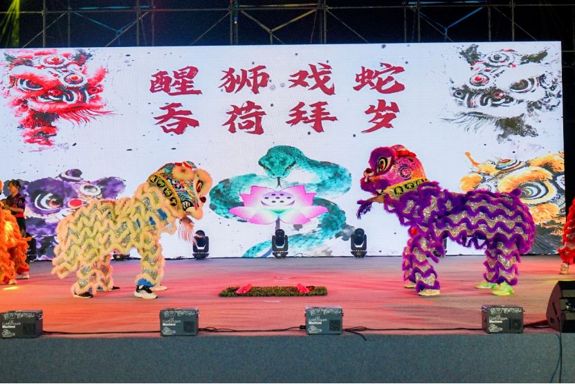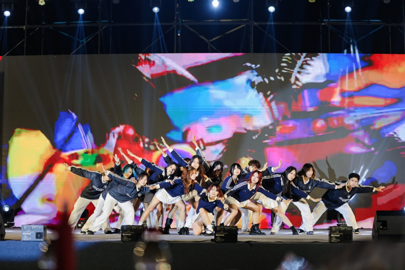 随着聚光灯亮起,学生社团瑞舞醒狮协会、广金武术协会和大学生艺术团说唱队、街舞队联袂演出的热场节目《醒狮戏蛇·舞庆华章·上大舞台·武韵风华》已点燃全场气氛。醒狮腾跃,利落拳脚,街舞与说唱的力量感,台下观众挥舞的荧光棒汇成一片星海,提前将现场变成欢乐的海洋。