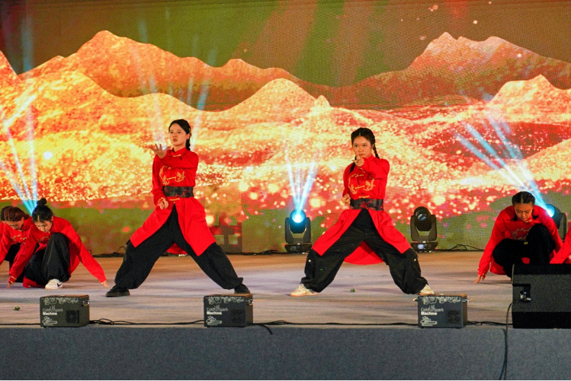 街舞队的《舞漾青春》以炸裂的节拍、高难度的动作,展现当代大学生“敢为天下先” 的豪情壮志。
