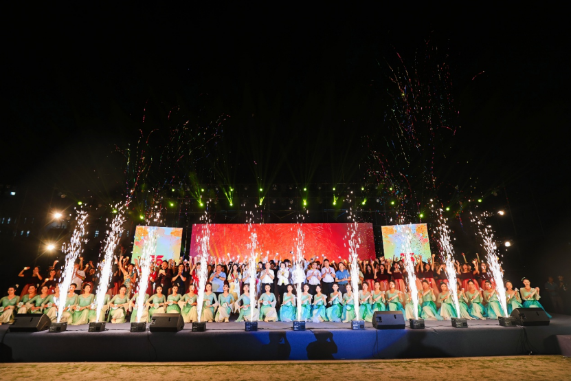 随着《相亲相爱》的旋律响起,全体演职人员上台与领导、嘉宾合影,晚会在温馨氛围中落下帷幕。