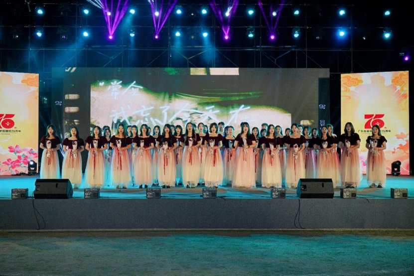 大学生艺术团合唱团的《我喜欢》则以互动形式引发全场共鸣,当主持人问“你们喜欢广金吗”,两千名观众齐声应答,声音响彻运动场,将对母校的热爱直白表达。