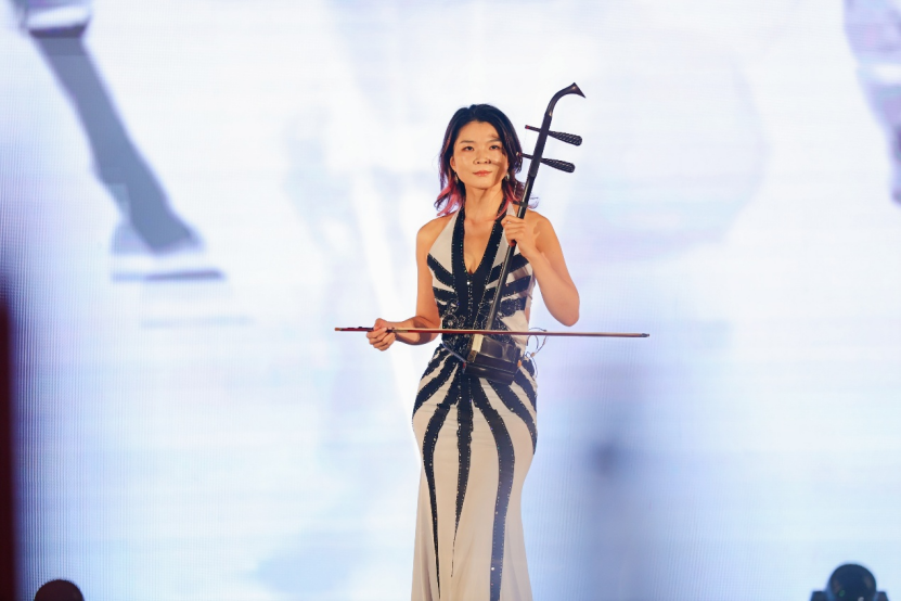大学生艺术团校外指导老师、华南农业大学曹佳望博士的二胡独奏《赛马》《自由探戈》惊艳全场——《赛马》的激昂旋律让人仿佛看到万马奔腾的豪迈,《自由探戈》的异域风情又展现出多元文化融合的魅力,两根琴弦演绎出传统与现代共生的意境。